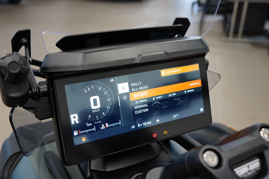 Förare och passagerare sitter bekvämt med värmehandtag, passagerarryggstöd och ett bredare, ergonomiskt säte. Canyon Redrock är inte bara funktionell – den är också full av smarta lösningar som justerbar vindruta, stöldskyddssystem (D.E.S.S.™) och LinQ-fästen som gör det enkelt att anpassa fordonet efter dina behov.