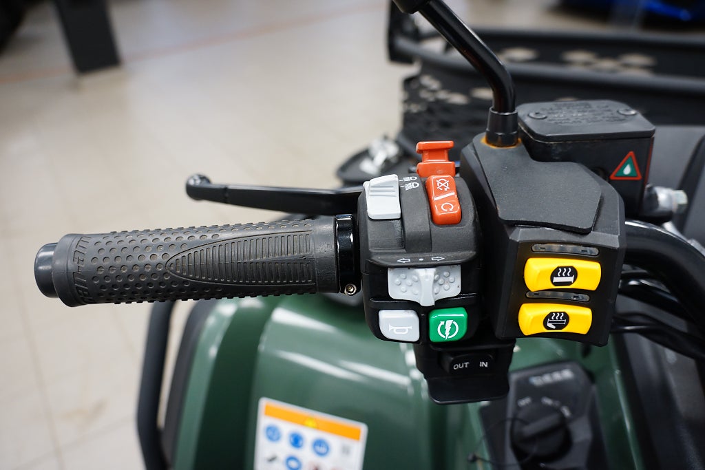 Här finns bl.a. plogpaket inkl. 137cm plogblad, el-vinsch, stålkorg fram, RANCHER-stötfångare fram och bak, sidoskydd i metall och underkörningskydd inkl. A-armsskydd.
