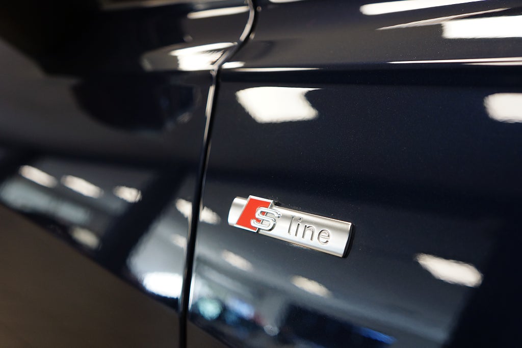 Svensksåld och mycket välvårdad bil i sällsynt fint skick med väldokumenterad servicehistorik och smakfull utrustningsspecifikation. Här har man valt den sobert klädamma exteriörfärgen Firmamentblå Metallic (5U5U) som kombineras med innerspecifikationen; Svart-Svart-Bergsgrå, instrumentbräda: Svart-Svart, matta: Svart.Material: Dinamica® mikrofiber "Frequenz"/läder med S-prägling (MZ) Här finns bl.a Komfortnyckel, Audi virtual cockpit, Förvaringspaket, S-Linepaket, Top-Infotainment Premium (MIB3, SBBR-ljus med LED-teknik och MMI navigation plus med MMI touch. Till bilen hör även en komplett uppsättning dubbde vinterdäck monterade på aluminiumfälgar samt två ( 2 ) nycklar. Leasebar för företag. Varmt välkommen till oss i Haninge!