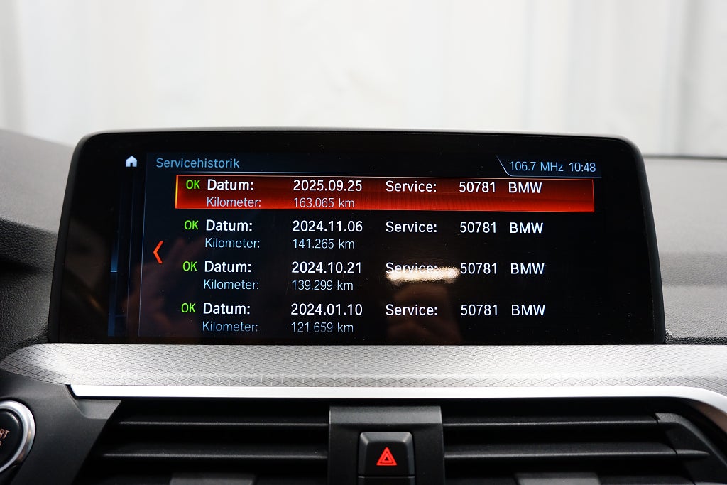 Svensksåld och smakfullt specificerad bil med dokumenterad servicehistorik och endast en ( 1 ) tidigare brukare. Exteriörfärgen är Alpinvit som kombineras med M-sportpaket och även originalmonterad dragkrok. Utöver detta har man lagt till High gloss shadow line och Headlining anthracite. 19" Aluminiumfälgar, LED headlight with extended scopes, Harman/Kardon surround sound system och Navigation system Professional. Till bilen hör även en komplett uppsättning dubbade vinterdäck monterade på aluminiumfälgar samt två (2 ) nycklar. Varmt välkommen till oss i Haninge!