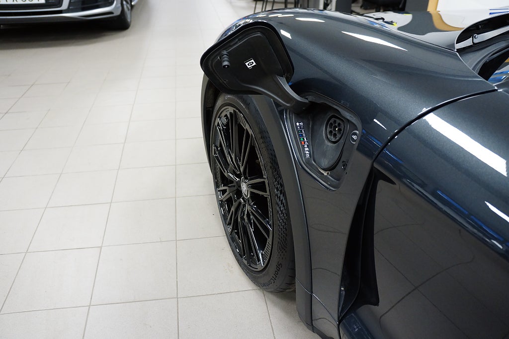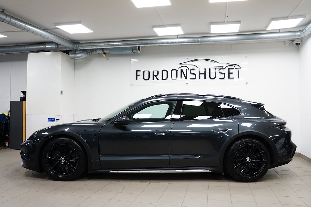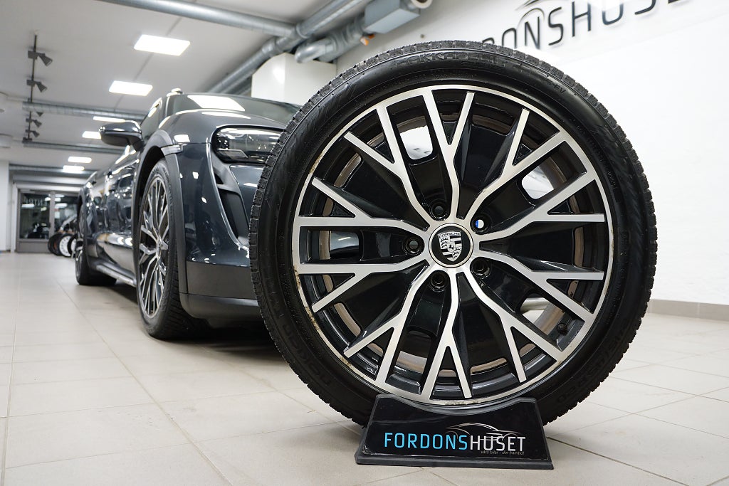Synnerligen välvårdad Taycan Cross Turismo 4 med momsen kvar vilket gör den leasebar för företag. Här har man specificerat bilen för att hålla en sober look men samtidigt behålla väldigt hög premiumkänsla. Sommarhjulen på Taycan Turbo S Aero-fälgar mäter 20", likaså de odubbade vinterhjulen som är på Porsche Originalfälgar är även dessa 20" och följer med utan kostnad. Bilen kommer med samtliga nycklar (2) och en (1) laddkabel (Mode 3).